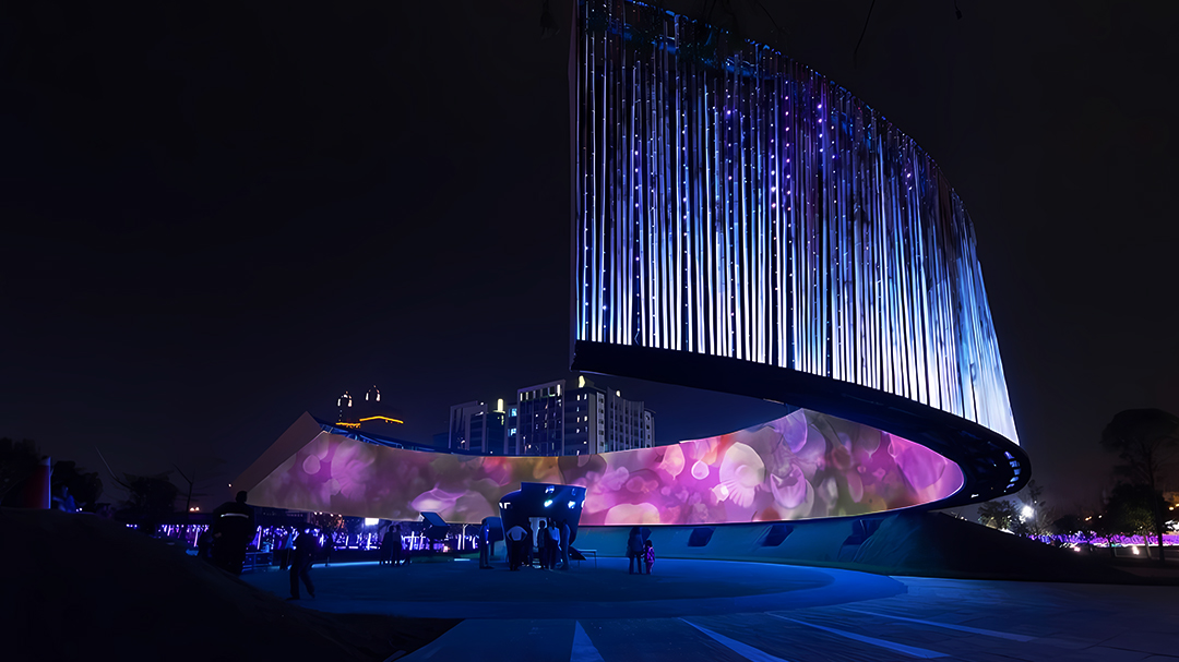 數字信息時代,華竣國際運用燈光秀、超清視頻、特種影院等新媒體視覺藝術的聲光影電炫酷效果,