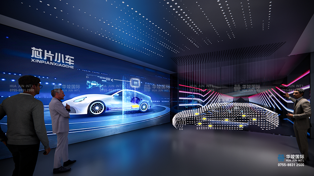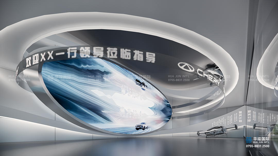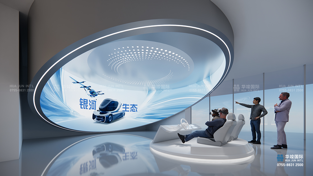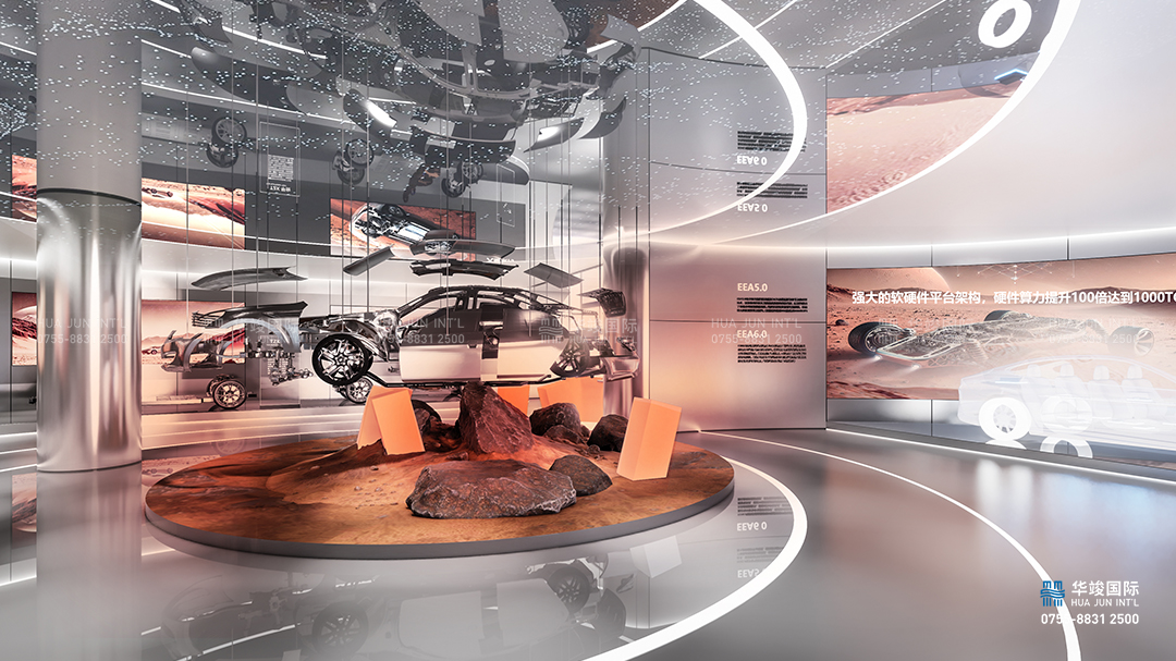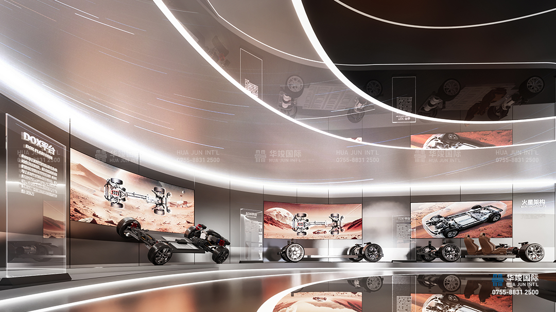 未來技術(shù)板塊作為新能源汽車展廳中的創(chuàng)新展示區(qū)域,重點(diǎn)展示未來汽車領(lǐng)域的核心技術(shù)與顛覆性創(chuàng)新產(chǎn)品,探索新能源、智能化和未來出行方式的無限可能。在這個(gè)區(qū)域,通過環(huán)屏營造出未來世界的想象空間,通過多樣化的技術(shù)展示和互動(dòng)體驗(yàn),讓觀眾感受未來汽車的科技魅力與生活方式的全新定義。